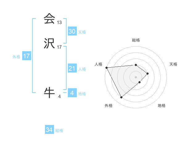 会沢 牛さんの外格は17画の4点!