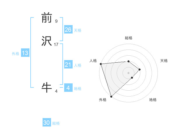 前沢 牛さんの外格は13画の5点!