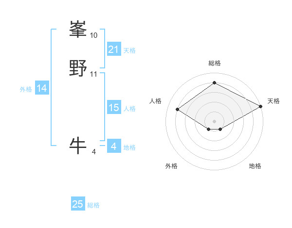 峯野 牛さんの総格は25画の4点!