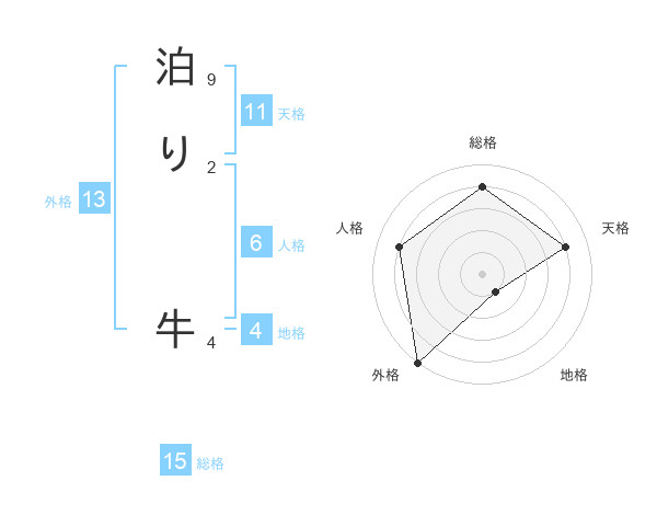 泊り 牛さんの総格は15画の4点!
