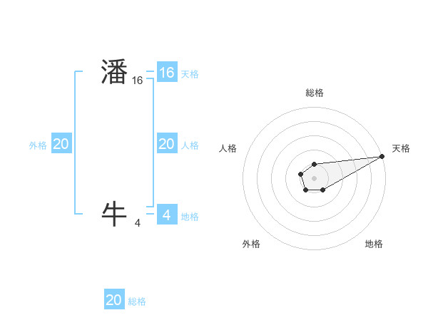 潘 牛さんの総格は20画の1点!