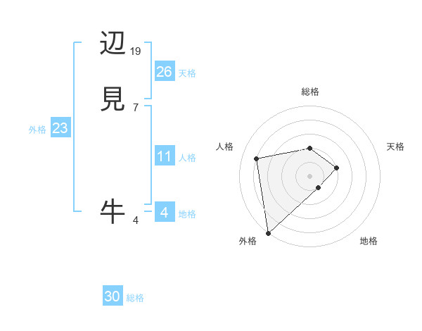 辺見 牛さんの外格は23画の5点!