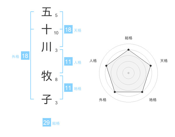 五十川 牧子さんを姓名の画数から五運を鑑定