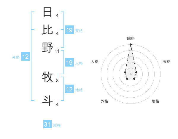 日比野 牧斗さんを姓名の画数から五運を鑑定