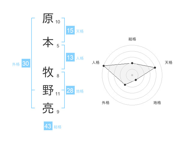 原本 牧野亮さんの天格は15画の4点!