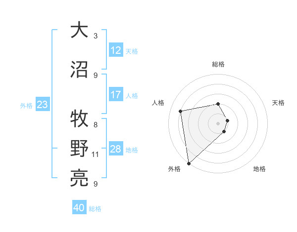 大沼 牧野亮さんを姓名の画数から五運を鑑定