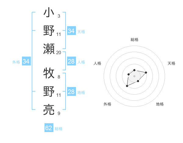 小野瀬 牧野亮さんを姓名の画数から五運を鑑定