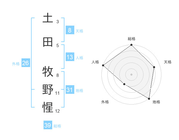 土田 牧野惺さんを姓名の画数から五運を鑑定