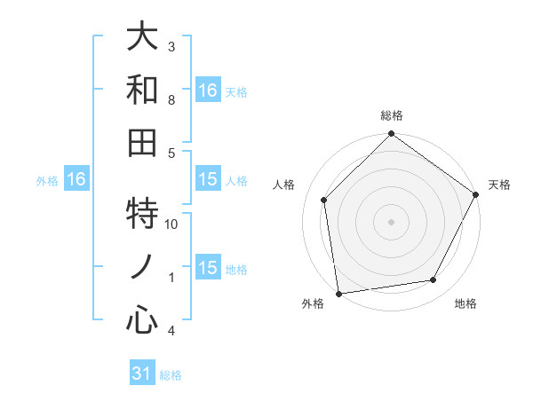 大和田 特ノ心さんを姓名の画数から五運を鑑定