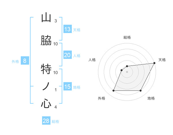 山脇 特ノ心さんを姓名の画数から五運を鑑定