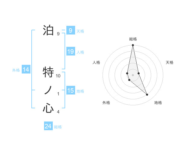 泊 特ノ心さんを姓名の画数から五運を鑑定