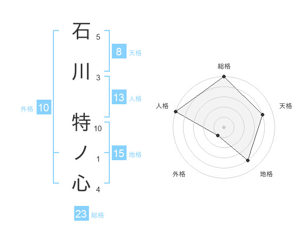 石川 特ノ心さんの総格は23画の5点
