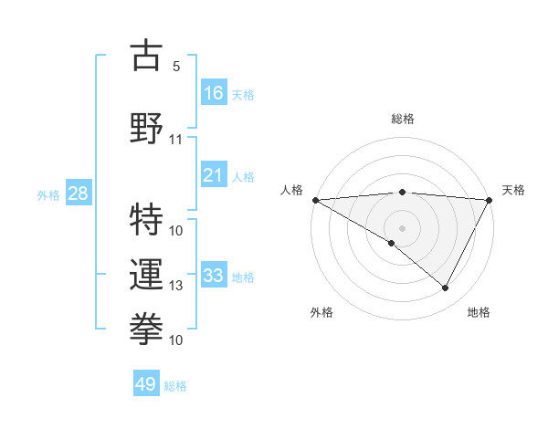古野 特運拳さんを姓名の画数から五運を鑑定
