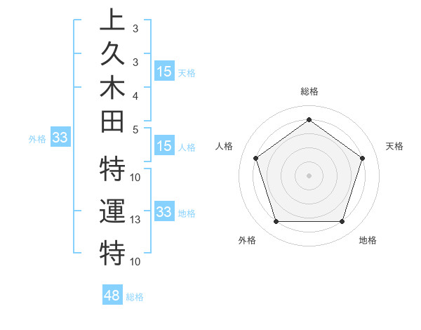 上久木田 特運特さんを姓名の画数から五運を鑑定