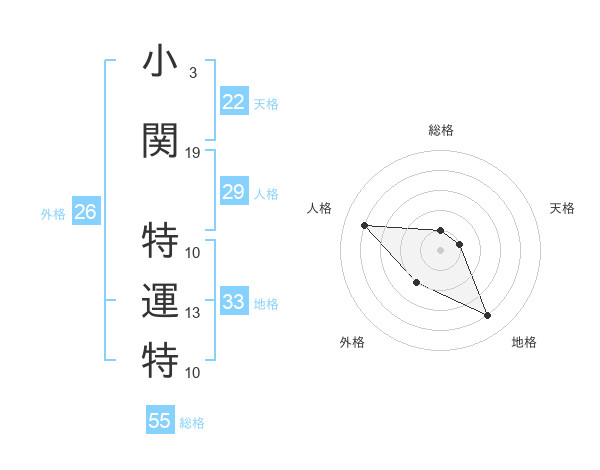 小関 特運特さんの総格は55画の1点