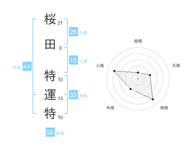 桜田 特運特さんを姓名の画数から五運を鑑定