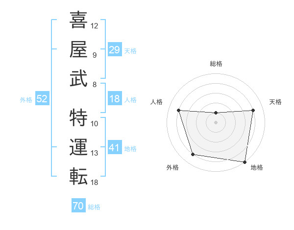 喜屋武 特運転さんを姓名の画数から五運を鑑定