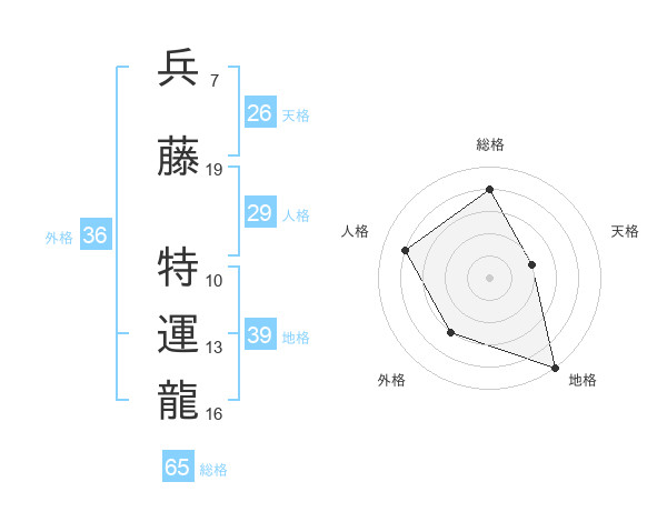 兵藤 特運龍さんの総格は65画の4点!
