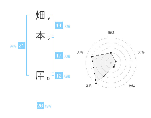 畑本 犀さんの総格は26画の2点!