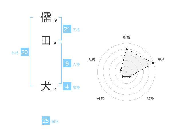 儒田 犬さんの天格は21画の5点!