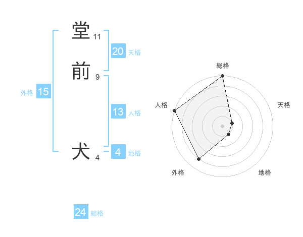堂前 犬さんの総格は24画の5点!