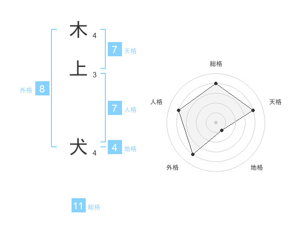 木上 犬さんの総格は11画の4点!