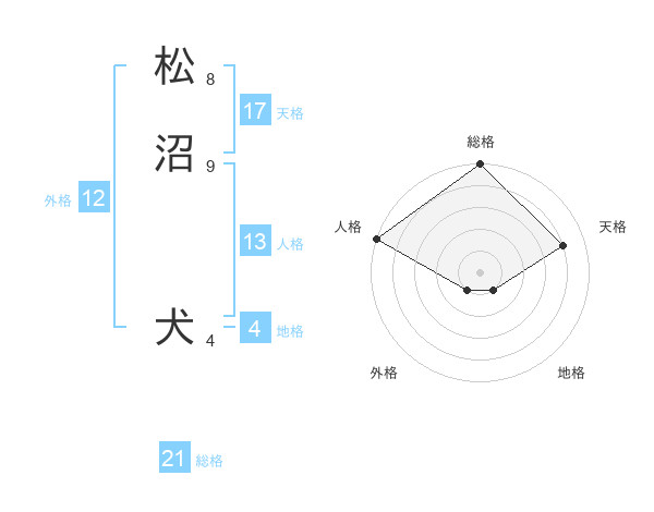 松沼 犬さんの総格は21画の5点!