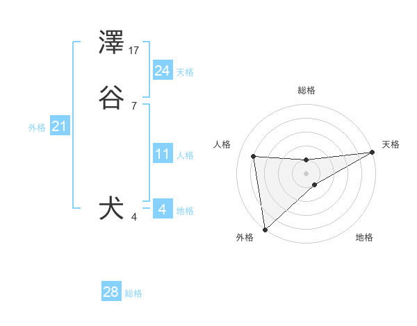 澤谷 犬さんの外格は21画の5点!