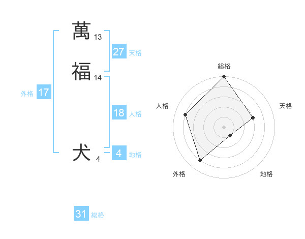 萬福 犬さんの外格は17画の4点!