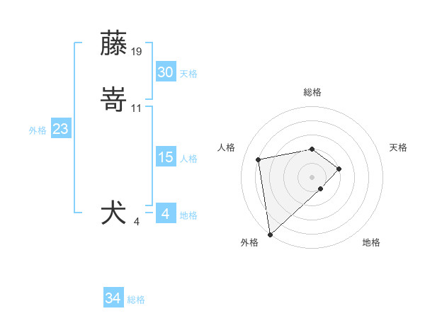 藤嵜 犬さんの総格は34画の2点!