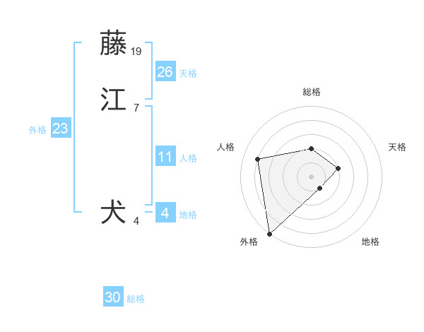 藤江 犬さんの総格は30画の2点!