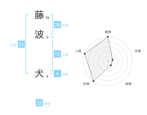 藤波 犬さんの総格は32画の5点!