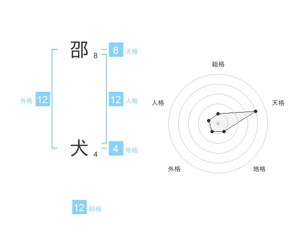 邵 犬さんの外格は12画の1点!