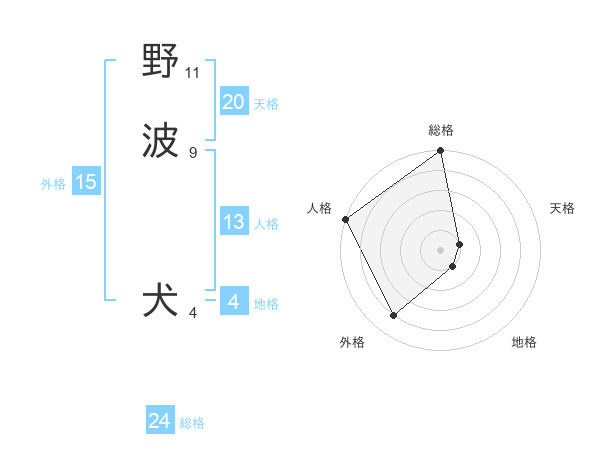 野波 犬さんの外格は15画の4点!
