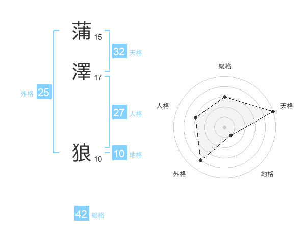蒲澤 狼さんの天格は32画の5点!