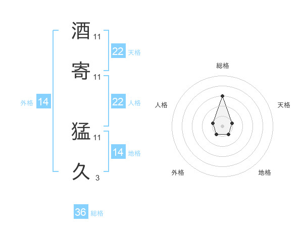 酒寄 猛久さんを姓名の画数から五運を鑑定