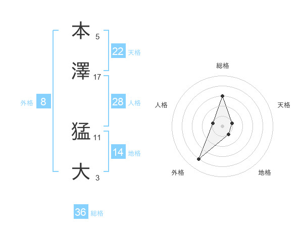 本澤 猛大さんを姓名の画数から五運を鑑定