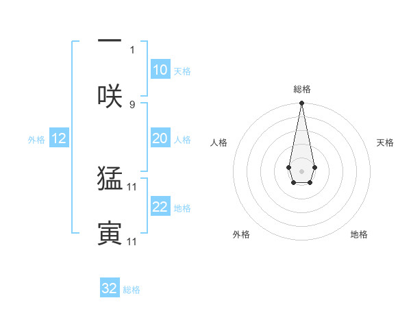一咲 猛寅さんを姓名の画数から五運を鑑定
