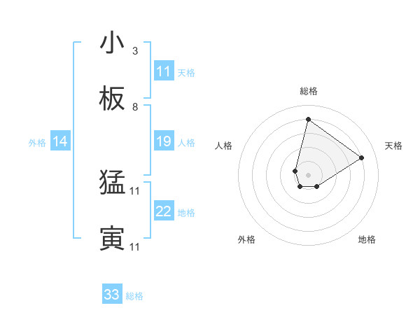 小板 猛寅さんの総格は33画の4点!