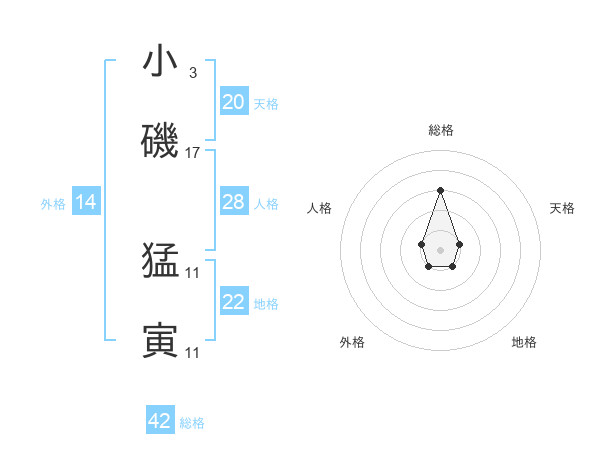 小磯 猛寅さんの総格は42画の3点!