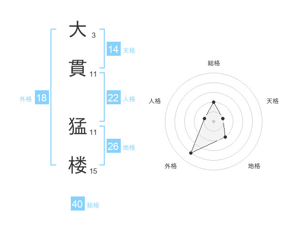大貫 猛楼さんの外格は18画の4点!