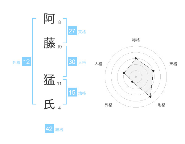 阿藤 猛氏さんの総格は42画の3点!