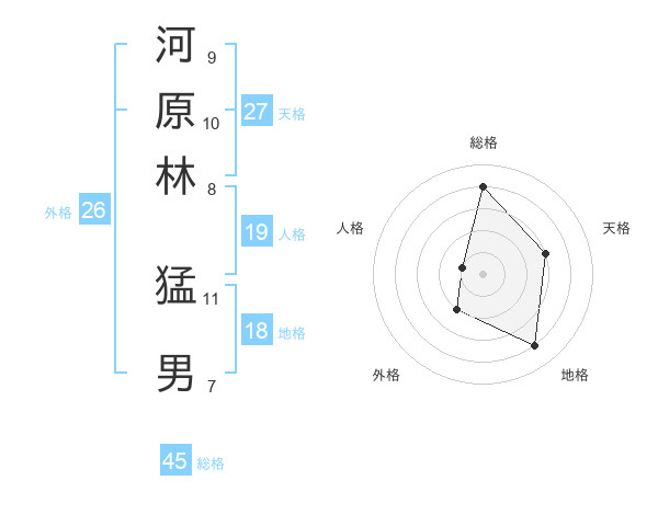 河原林 猛男さんを姓名の画数から五運を鑑定