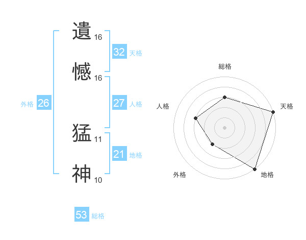 遺憾 猛神さんを姓名の画数から五運を鑑定