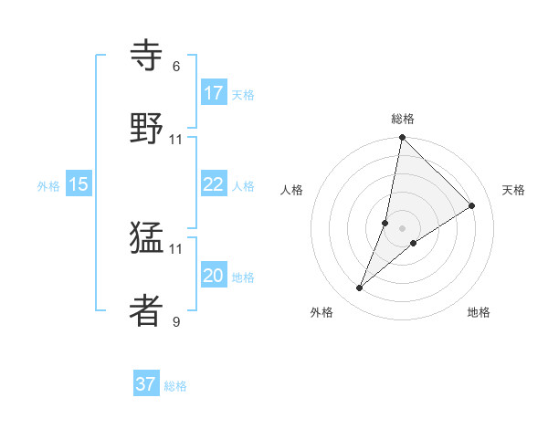 寺野 猛者さんを姓名の画数から五運を鑑定