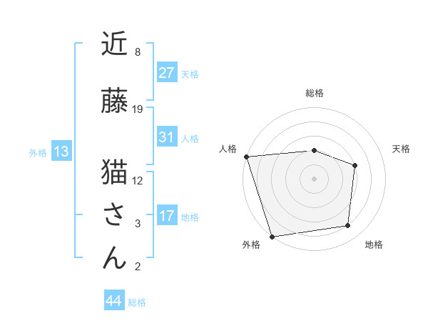 近藤 猫さんさんを姓名の画数から五運を鑑定