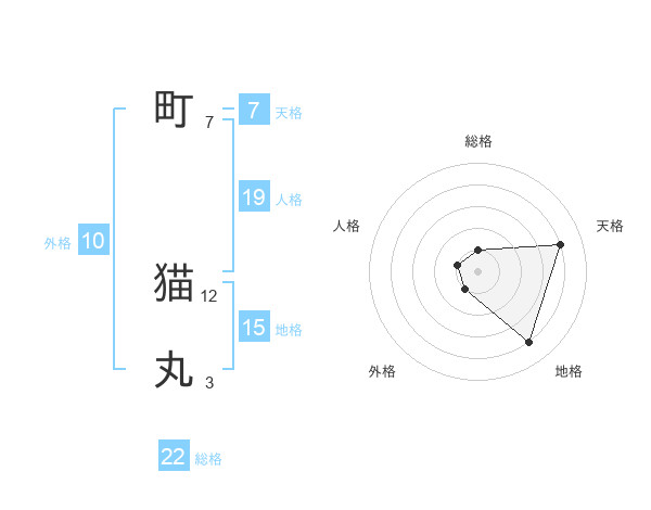 町 猫丸さんの総格は22画の1点!
