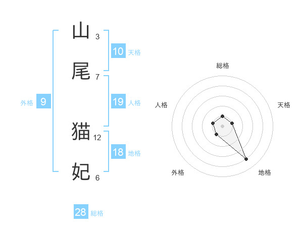 山尾 猫妃さんの総格は28画の1点!