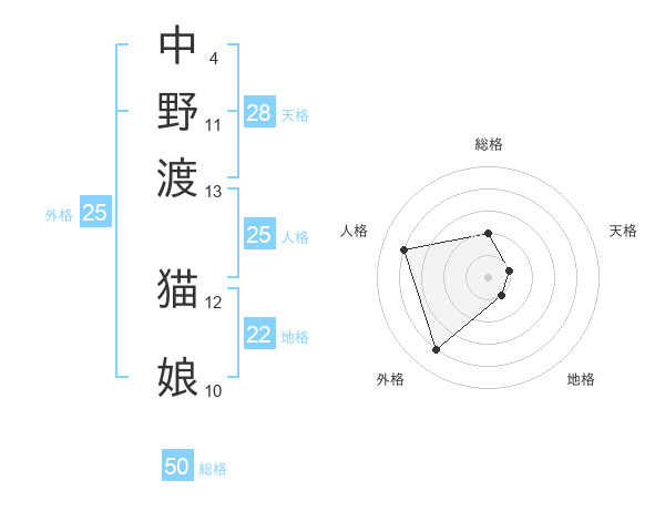 中野渡 猫娘さんを姓名の画数から五運を鑑定
