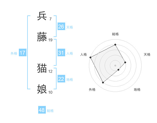 兵藤 猫娘さんを姓名の画数から五運を鑑定